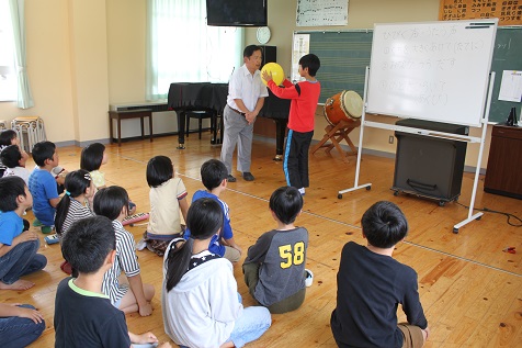 その後、歌う声とはどんな声か、風船を使って確かめました。