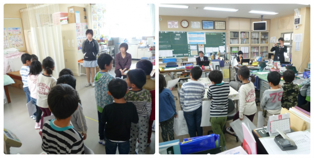 1年生の生活科で学校探検を手伝いました。