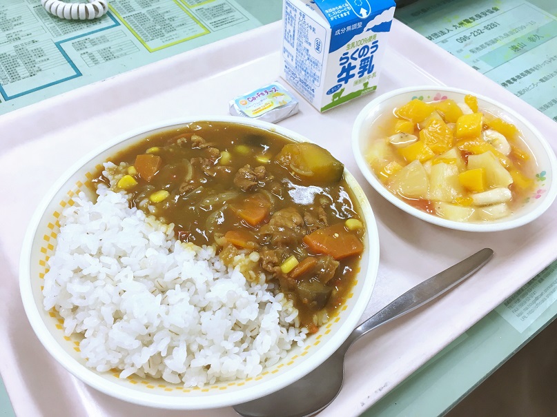 夏野菜のカレーライスに入っているたまねぎとじゃがいもは、くらら学級の子どもたちが愛情込めて、育てたものです。子どもたちも「おいしい!」と言いながら、カレーをもりもり食べていました。