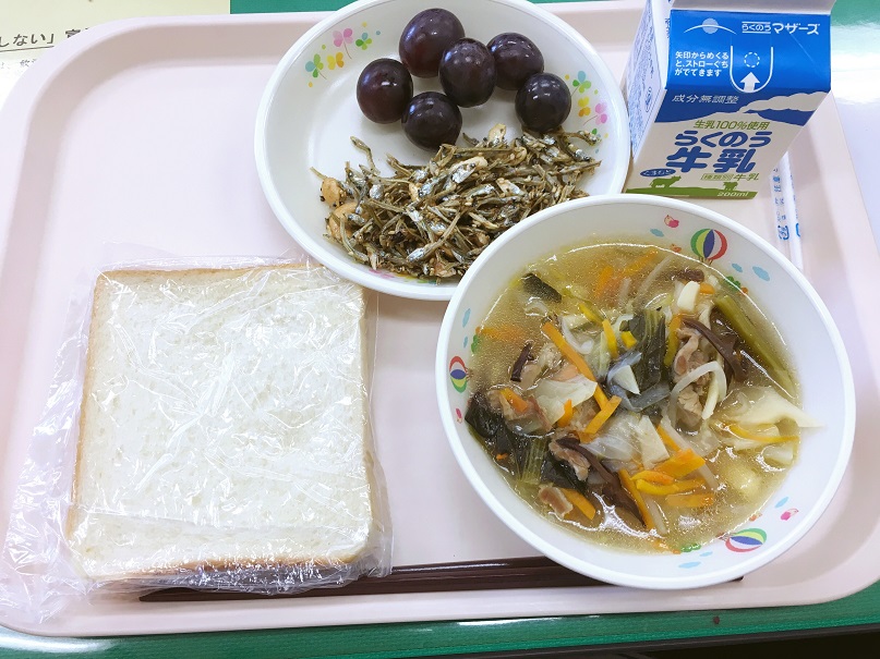 八宝菜の豚肉とキャベツが特に好きでした。何日も前からぶどうが出るのが楽しみで、今日のぶどうは甘くておいしかったです。(1年生)