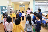 本校では、掃除の時間に週1回集会を行っています。本日は「えがお集会」。