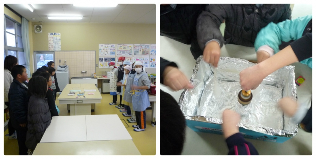 ちなみに、左の写真は手作りクラブの説明を聞いているところ。右は科学クラブで