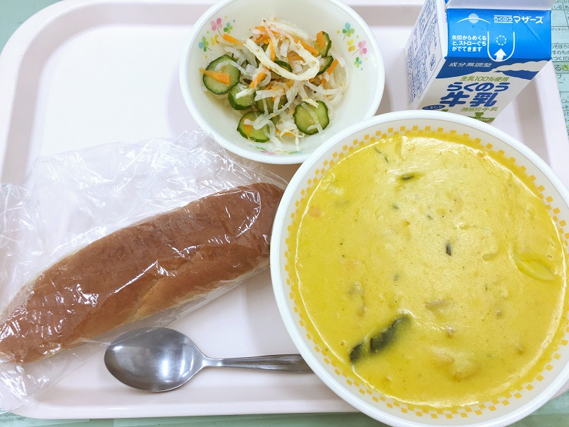 かぼちゃスープがとってもおいしかったです。カミカミサラダもおいしかったです。全部おいしかったです。(1年生)