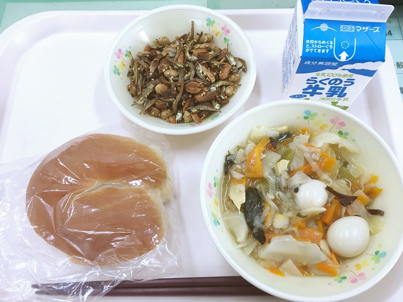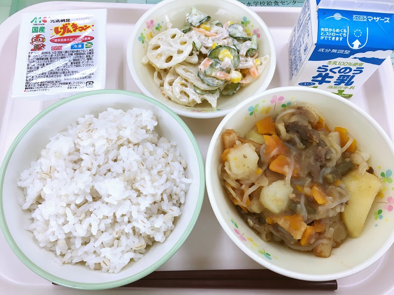 今日の納豆は、熊本県産の「ふくゆたか」という大豆でできています。「先生!去年、納豆工場に行きましたよ!」と、昨年度、見学旅行に行った4年生から話しかけられました。納豆が苦手な子もがんばって食べていました。
