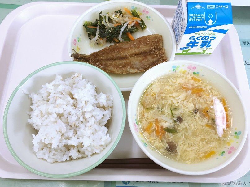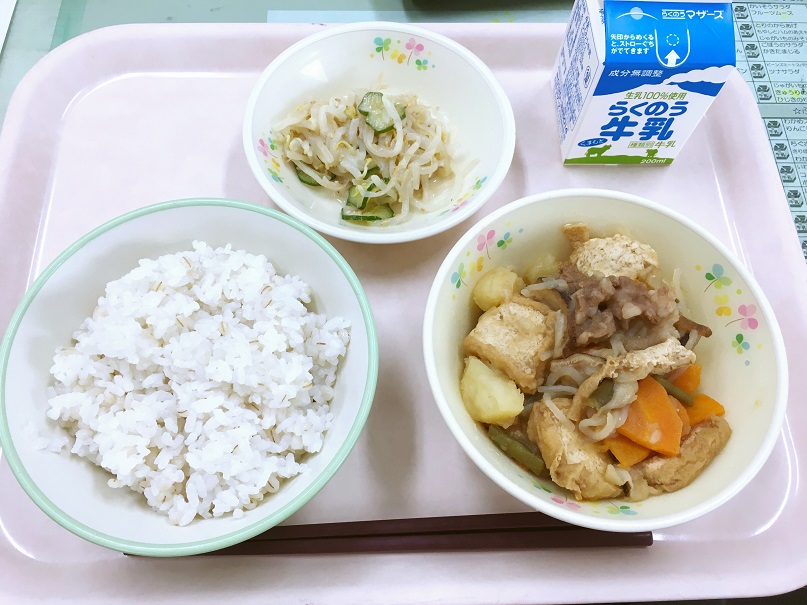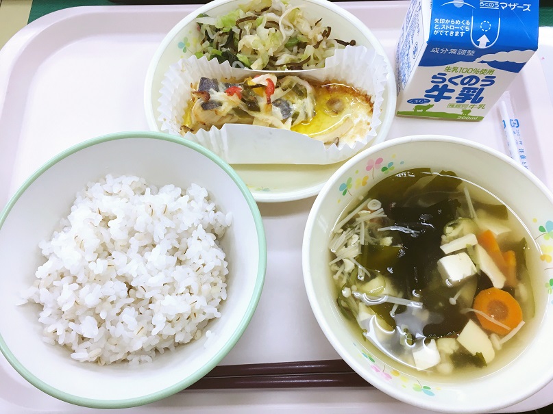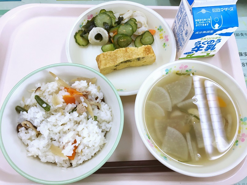 ちくわの酢みそ和えのちくわが、弾力があっておいしかったです。また、五目ご飯が、いろんな野菜が入っていて、いろんな味があって、とてもおいしかったです。また食べたいなぁと思いました。(5年生)