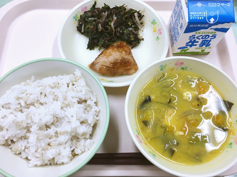 今日のかぼちゃのみそ汁がおいしかったです。いつもおいしい給食をありがとうございます。(2年生)