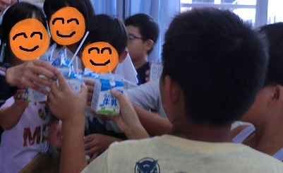 3年生は、誕生日の児童がいるとき、「おめでとう!」と、ハッピーバースデーの歌を歌い、クラス全員で牛乳を持って、乾杯をします。みんな笑顔で、とても楽しそうです♪ 私の誕生日も、牛乳でお祝いをしてもらいたいと思います!