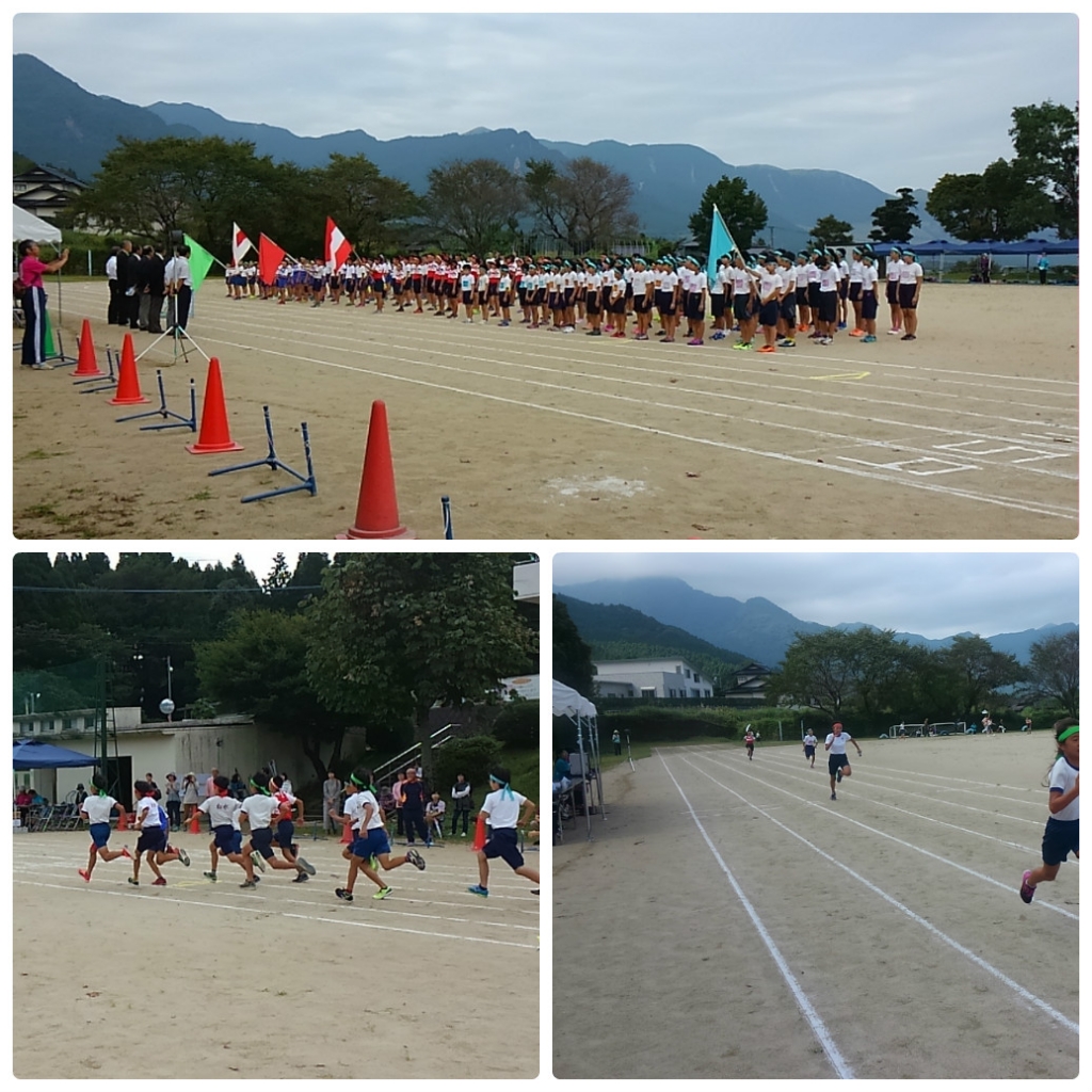 村の陸上記録会が行われました。会場は久木野小学校グラウンド。