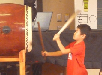 次に、太鼓を一人ずつ8小節のリズムを打ちました。