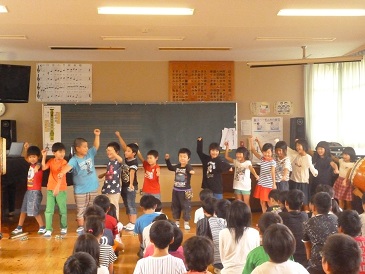 みんなのヒーロー「阿蘇レンジャー」が一緒に踊ってくれました(^^)