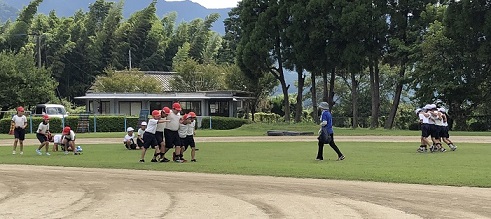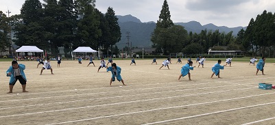 本来は南小国町の三愛レストハウスのグラウンドで行われる予定でしたが、昨日までの雨で小国ドームでの開催となりました。