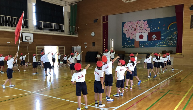 最後に校長が「よさや頑張りを出し合ったり、認め合ったりする白水小学校にしましょう」と呼びかけて集会は終わりました。