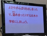 最後に校長が「よさや頑張りを出し合ったり、認め合ったりする白水小学校にしましょう」と呼びかけて集会は終わりました。