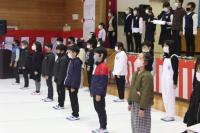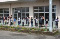 しかし、6年生をお祝いしたい、見送りたいという在校生の優しい気持ちから、6年生の修了式ではありましたが、白水小の全児童が体育館に距離をとって参加しました笑う