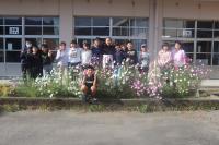 新しい白水小学校やみんなのお家、南阿蘇村がコスモスの花でいっぱいになる=平和を願う心がいっぱいになることを願った6年生の取り組みでした期待・ワクワク