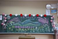 毎日過ごしていた6年生の教室には、白水小の新鋭画家による、話題の「黒板アート」が描かれ、南阿蘇の美しい風景で卒業生をお祝いしましたキラキラ