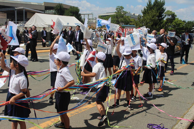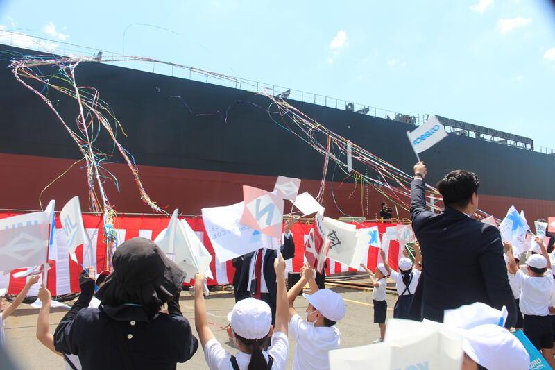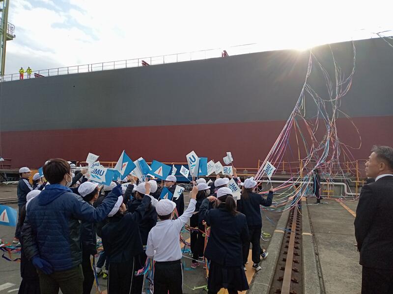 1月10日(水)、4年生がJMUで建造された大型タンカーの出港見送りに参加しました。全長292mの迫力ある建造船が出港すると大きな歓声があがりました。いい経験になりましたね。