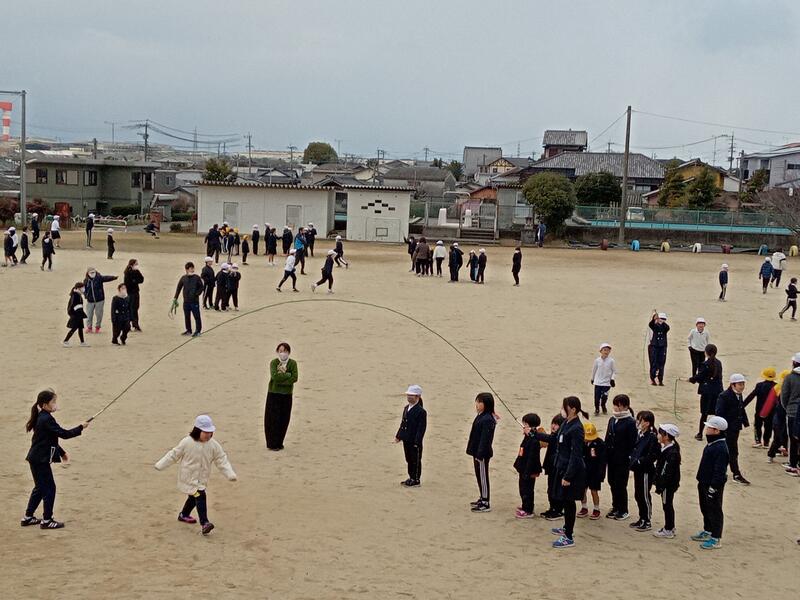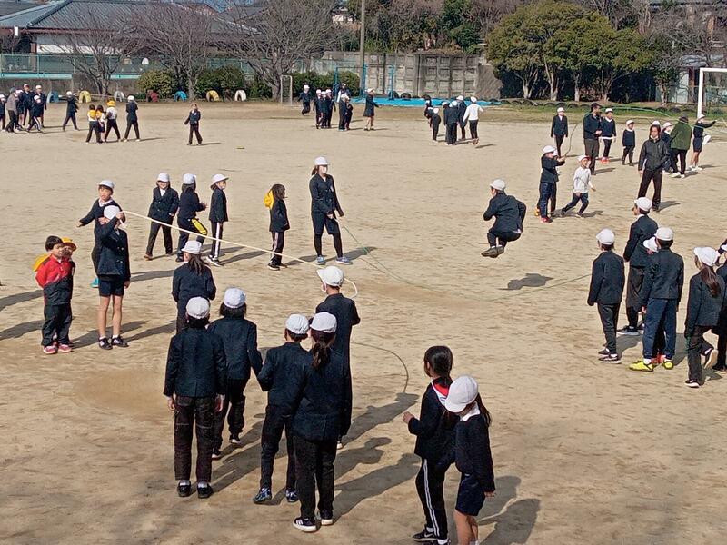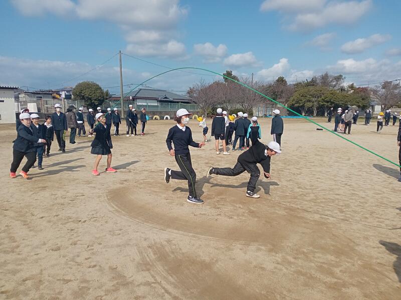 2月7日(水)、異学年との交流を楽しむことを目的に、縦割り班による大縄チャレンジを行いました。運営委員会を中心に高学年が主体的に取り組んだ活動です。跳ぶのが苦手な児童に励ましの声かけが見られるなど、心が温かくなる様子が見られました。