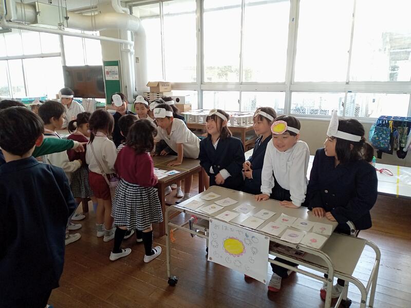 2月13日(木)、新1年生体験入学を実施しました。1年教室では、ふれあい活動として、お店屋さんごっこが行われていました。飲み物屋さんや本屋さん、魚屋さん、ラーメン屋などのお店が準備してあり、新1年生と楽しく交流ができました。