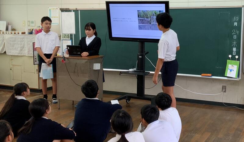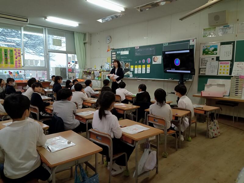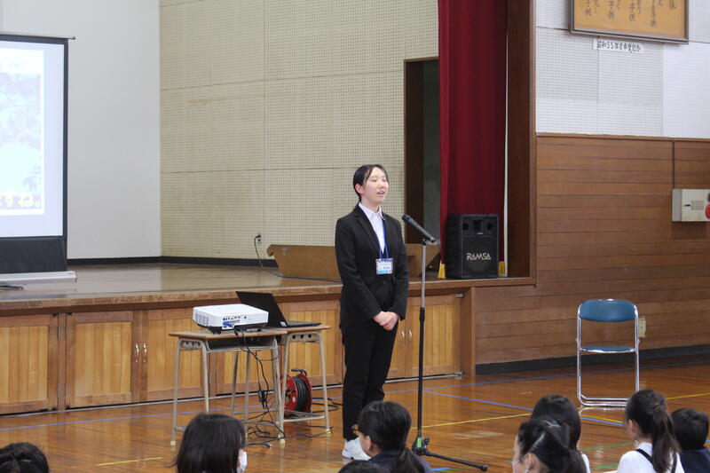 1月31日(水)、カジオ企画取締役の櫻井真実様が4年~6年児童を対象に「花咲くプラネット」の紹介をされました。「花咲くプラネット」は小学生から高校生までを対象にした、地域のSDGsを学べる無料のWEBサービスです。子どもたちが「自分たちに何ができるか」、「どんな進路、職業を目指すのか」を考える手助けになればという思いで、このWEBサービスを導入されました。子どもたちは、地域の企業、団体が発信しているSDGsの取組を見付け、それに対して「自分は〇〇していきたい。」など、考えたことを発信していました。