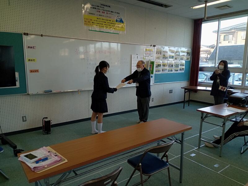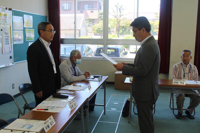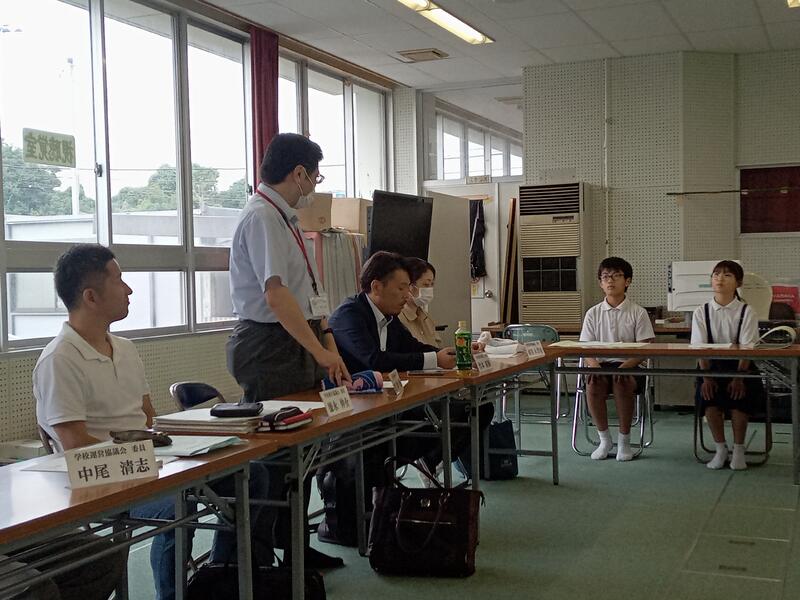 5月9日(木)、「第1回学校運営協議会」を開催しました。上野峰廣学校運営協議会会長はじめ、委員の皆様にご来校していただきました。松永教育長より委嘱状の交付があり、授業の様子を参観していただきました。その後、校長から、本年度の学校教育目標や学校経営方針等の説明があり、委員の皆様に承認をいただきました。地域と一体となった、子どもたちへのよりよい教育のために、ご協力をよろしくお願いいたします。