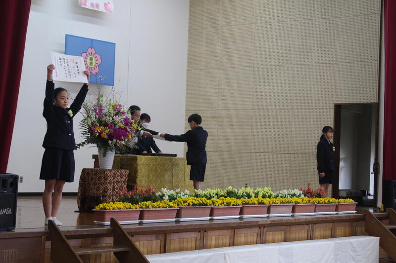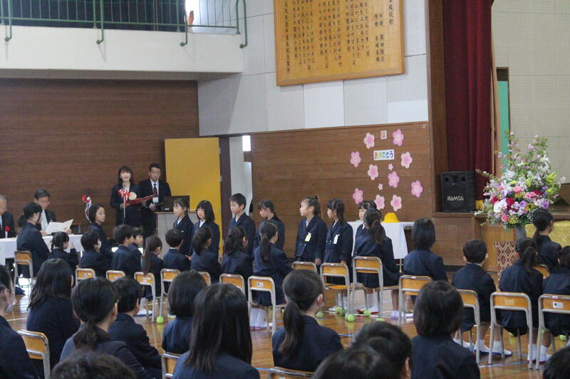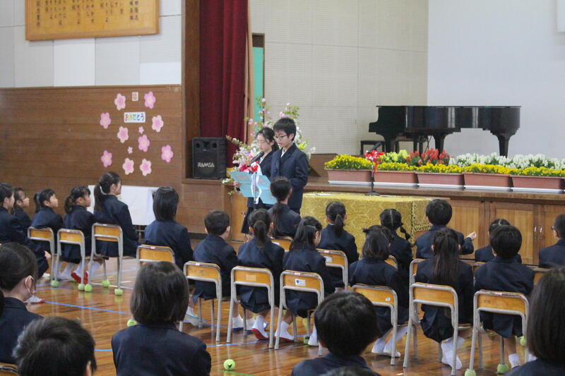 3月22日(金)は修了式でした。まず、4名の代表児童が後期に頑張ったことや次の学年の目標を発表しました。その後、学校長がそれぞれの学級の代表に修了証を手渡しました。4月からは1つ上の学年になります。新しい学年で、さらに生き生きと頑張ってほしいと思います。