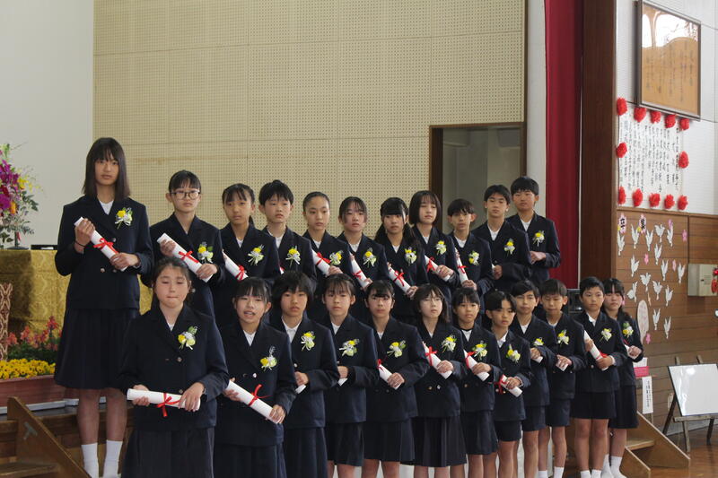 3月24日(月)は、令和6年度の卒業証書授与式でした。卒業証書を受け取る表情や態度に6年間の確かな成長を感じました。4・5年生も心を込めた呼びかけや歌で卒業生を祝うことができました。中学校へ進学する35名の卒業生の皆さんの今後の活躍を願っています。 卒業おめでとう。