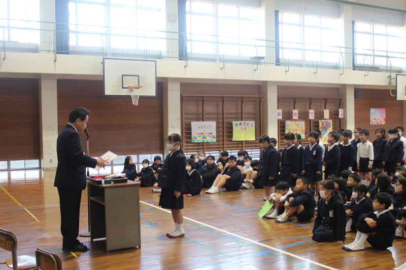12月22日(金)、冬休み前集会を実施しました。冬休みまでの後期前半は、たくさんの行事がありました。また、地域の方々のご協力で豊かな体験活動も実施でき、子ども達の確かな成長が見られました。集会では、登校時のあいさつがとてもよくできていた班を表彰しました。毎朝全員が立ち止まってあいさつができていた元德6班、素晴らしかったです。
