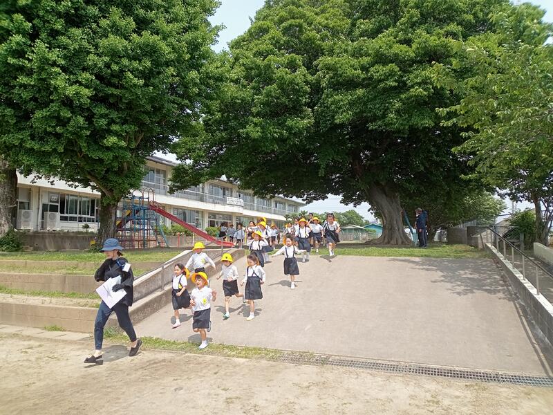 5月7日(火)、地震を想定しての避難訓練を行いました。担任の指示を聞き、安全かつ速やかに避難できるように、「お・は・し・も」(おさない・はしらない・しゃべらない・、もどらない)を意識させました。