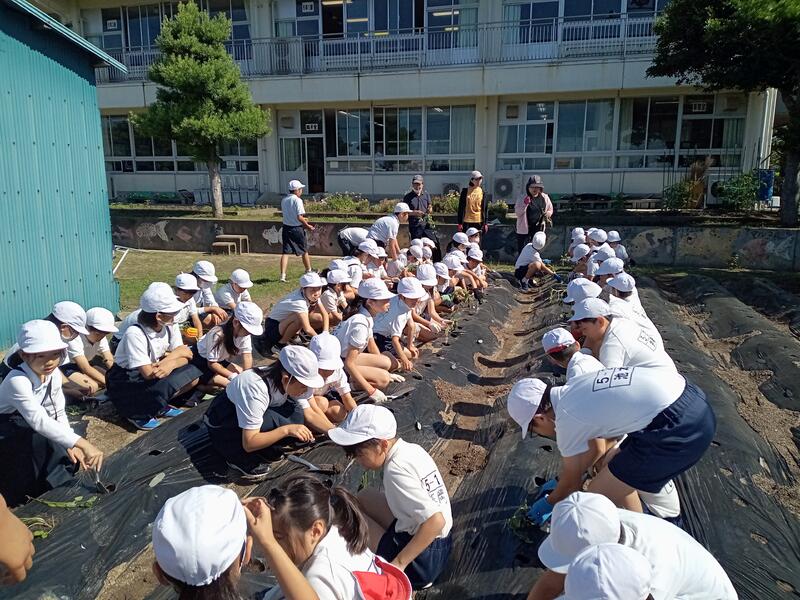 5月29日(水)、サツマイモの苗植えをしました。1年生は6年生と、2年生は5年生と一緒に植えました。しっかり世話をして、昨年のように大収穫になるといいですね。