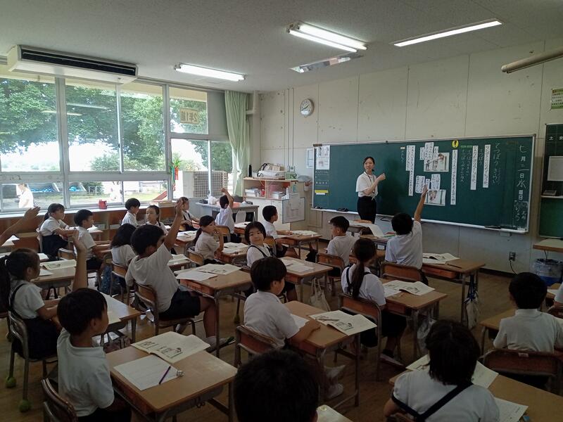 9月4日(木)、今日から新しいALTの先生がいらっしゃいました。レベッカ・ローズ・ウッド先生です。レベッカ先生はオーストラリア出身で、母国では高校で科学の先生をされていたそうです。今日は、オーストラリアの紹介やご自分の紹介をクイズ形式を取り入れながら授業をされていました。子供たちが意欲的に楽しく学んでいました。