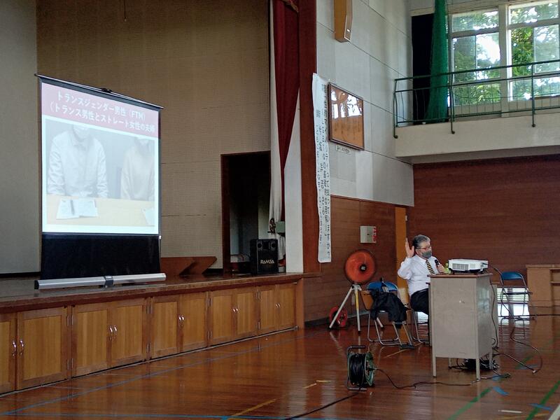 7月3日(水)、梅雨の晴れ間の大変蒸し暑い中、多くの保護者に来校いただきました。授業参観では、すべての学級で人権学習を行いました。PTA講演会は、講師に「ともに拓くLGBTQ+の会くまもと代表」の今坂 洋志さんをお招きし、「性的マイノリティ」に関する講演をしていただきました。学級懇談会では、会の始まりに学級委員の皆様が「親の学びプログラム」を実施され、和気あいあいとした雰囲気の中で懇談会が進んでいきました。