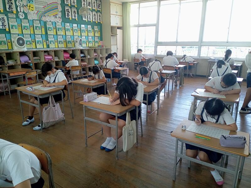 8月27日(火)、33日間の夏休みが終わり、今日から前期後半のスタートです。夏休み中は大きな事故もなく過ごせたようで何よりでした。また、暑い日にもかかわらず、朝から気持ちのよいあいさつをする姿も見られました。今日は、漢字・計算大会をそれぞれの学級で行っていました。夏休みに頑張った成果が見られたでしょうか?
