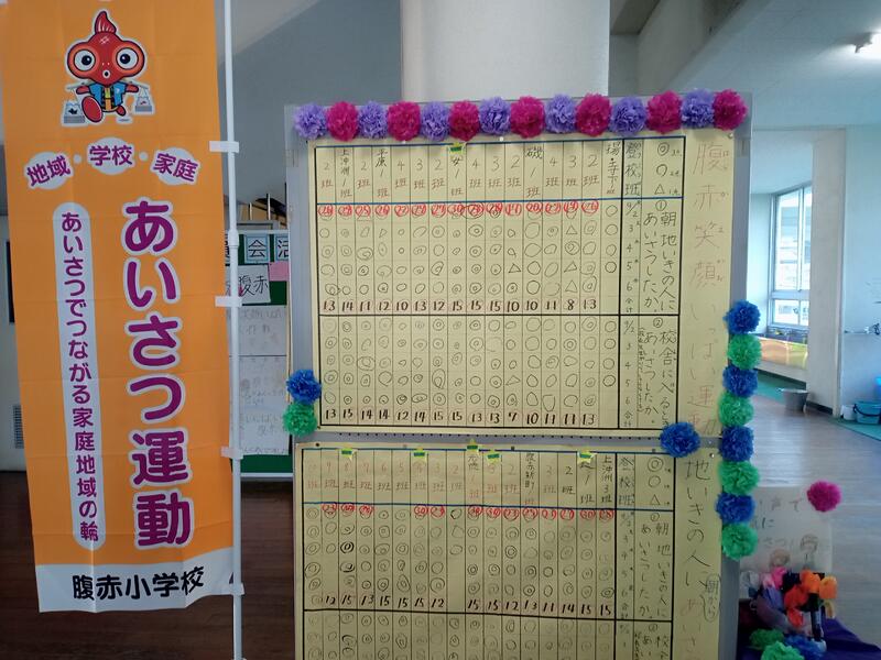 夏休み前の代表委員会で、「腹赤笑顔いっぱい大作戦」の1つとして、地域の人に笑顔であいさつをするための取組について、話し合いがありました。その取組が夏休み明けに始まりました。9月2日(月)から6日(金)までの5日間に渡って、登校班ごとにチェック表に記入していきました。運営委員会が集計して、よくできた登校班を発表しました。地域へのあいさつがもっと良くなるように、引き続き委員会活動を中心に取組を考えていってほしいですね。特にお世話になっている見守り隊の人や交通指導の方々には、「感謝の心」を込めてあいさつをしてほしいです。