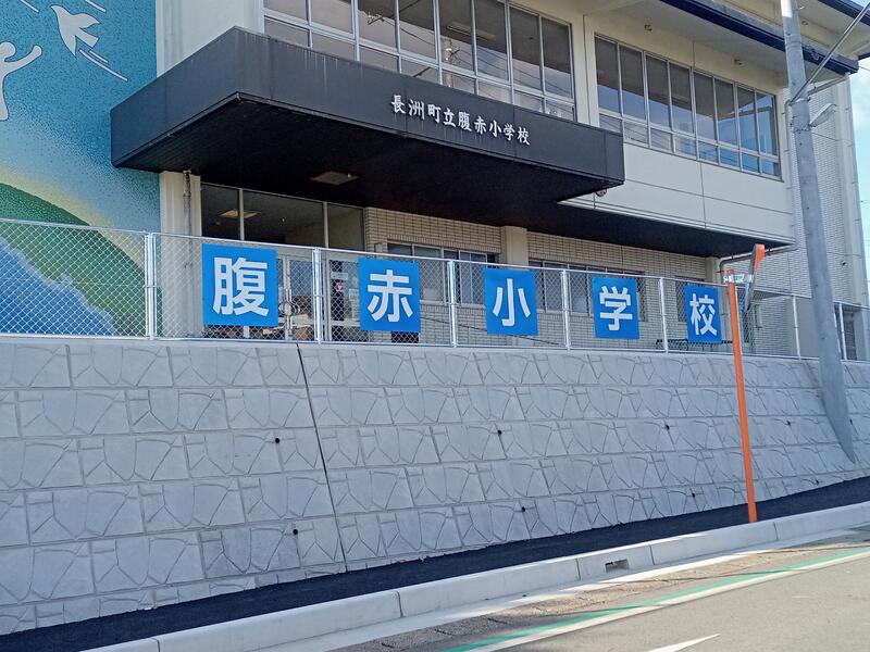 11月18日(月) 歩道整備の工事に伴い、玄関前に新しいフェンスが設置されています。せっかくなので、学校名がすぐに分かるように、この日にフェンスへ校名の看板が取り付けられました。道路からはっきりと腹赤小学校と分かるようになりました。