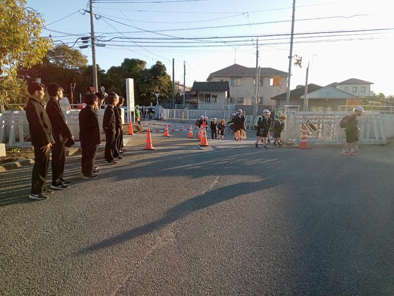 11月19日(火)、30名ほどの長洲中学校3年生の生徒さんが、本校であいさつ運動をしました。正門と西門に分かれて、小学生にさわやかなあいさつをされていました。ミッキーマウスのかぶり物した生徒さんもおり、子供たちは大喜びでした。参加した皆さん、ありがとうございました。