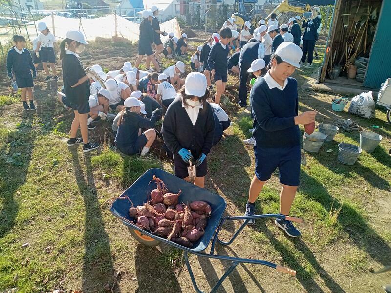 11月19日(火)、5年生と2年生がさつまいも掘りをしていました。他の学年は収穫をすませており、今日が最後のさつまいも掘りとなりました。昨年に比べ収穫が少なかったようですが、特に低学年は楽しく活動していました。