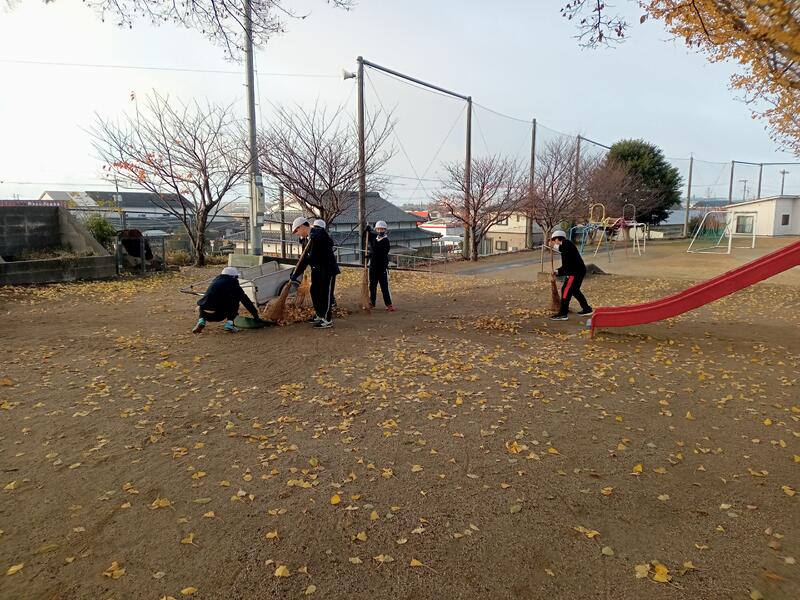 12月になり、前庭にムクの木やイチョウの葉がたくさん落ち始めました。毎年この時期になると落ち葉の掃除が大変になりますが、ここ数日4年生の有志の子供たちが落ち葉を集めてくれているのでとても助かっています。始業前や昼休みに熱心に頑張っている子供たち、ありがとうございます。学校をきれいにするために進んで取り組む姿勢がとても素晴らしいです。