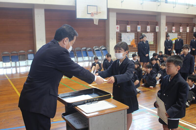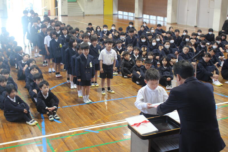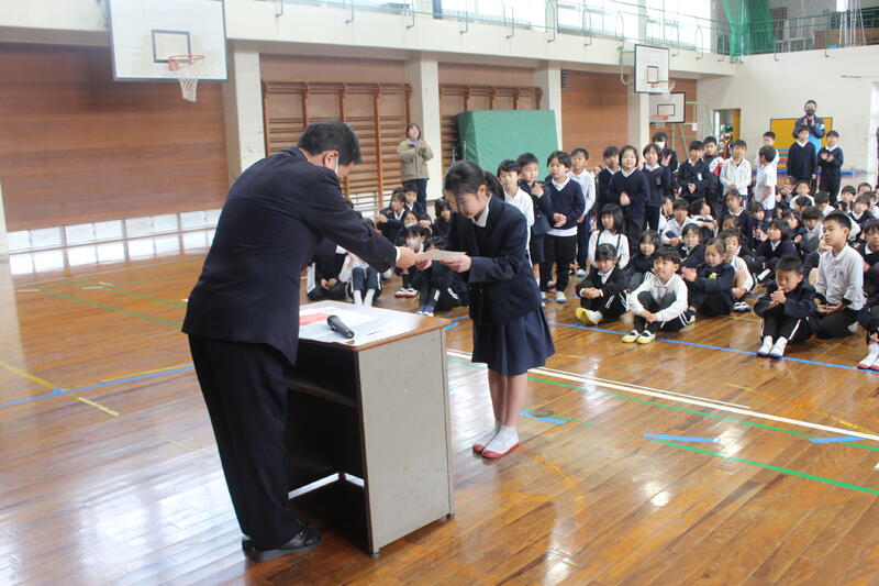 3月21日(金)は、令和6年度の修了式でした。3名の代表児童が後期に頑張ったことや次の学年の目標を発表しました。学校長から各クラスの代表者に修了証を渡し、今年度の頑張りについて話がありました。また、今年度3回目の「はらかキラリン賞」の表彰も行い、42名の児童が表彰されました。4月からは、1つ上の学年でさらに成長してくれることを願っています。