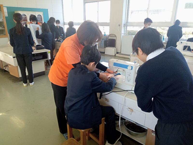 1月30日(木)、5年生が家庭科の授業で、エプロンを作成していました。その際、7名の婦人会の方々にミシンの使い方を教えていただきました。ミシン指導は担任だけではとても大変ですが、丁寧に指導していただき、スムーズに作業することができ、とても助かりました。子供たちも楽しく作業できました。ありがとうございます。