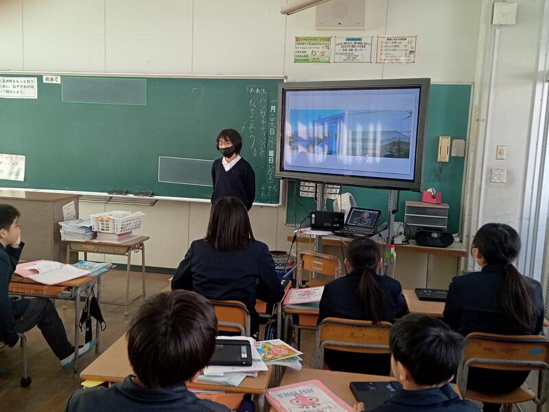 1月30日(木)、5年生の英語の授業を参観しました。この日は「レベッカ先生に長洲町をもっと好きになってもらうために、おすすめの場所や名産品について紹介しよう。」というテーマで、それぞれのおすすめを英語で発表していました。どの子もよく頑張って発表することができていて、素晴らしいと思いました。