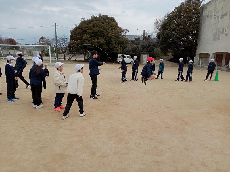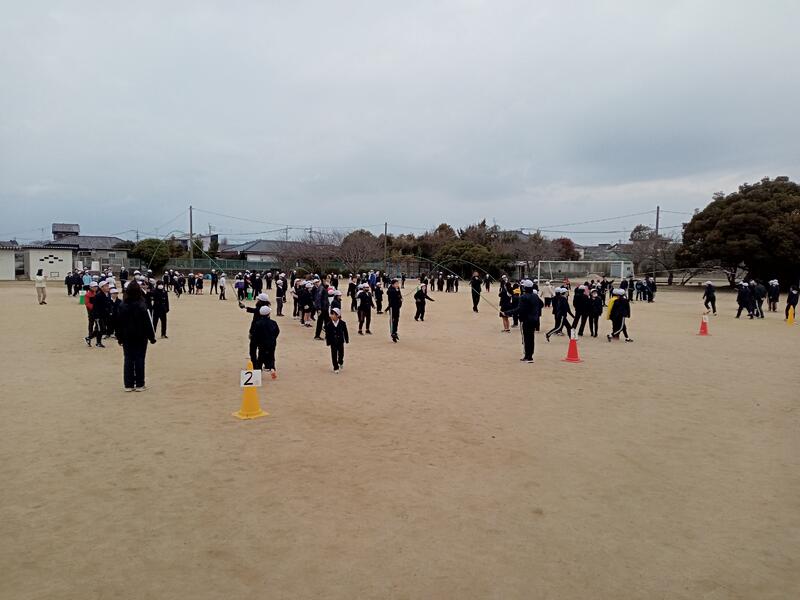 2月7日(金)、長縄チャレンジを縦割り班で実施しました。どの班も協力しながら目標回数に向かって、チャレンジしていました。小雪が舞う寒い日でしたが、笑顔で活動する姿が見られました。