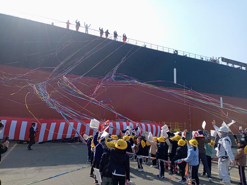 2月20日(木)、1年生がJMUの出港式に参加しました。寒風が吹く寒い日でしたが、大型タンカーの見送りに子供たちは大喜びでした。