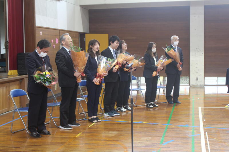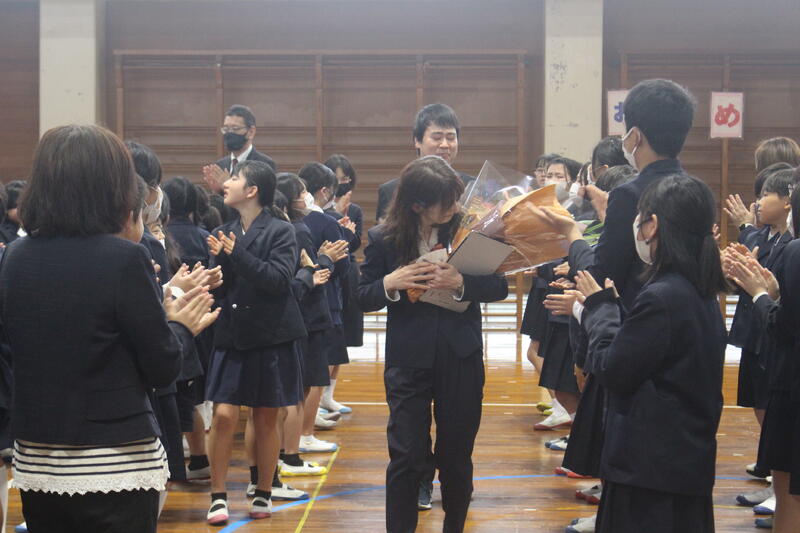 3月28日(金)に退任式を行いました。今年度は、7名の先生が退職、転出になりました。代表児童からお別れのあいさつがあり、最後はアーチをつくって異動される先生とのお別れを惜しみました。