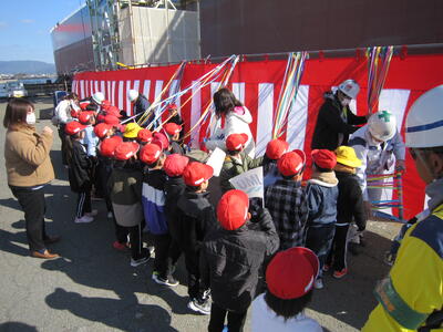 出港する際には、紙テープを持ち、大きな船の動き出す様子をしっかり見ることができました。