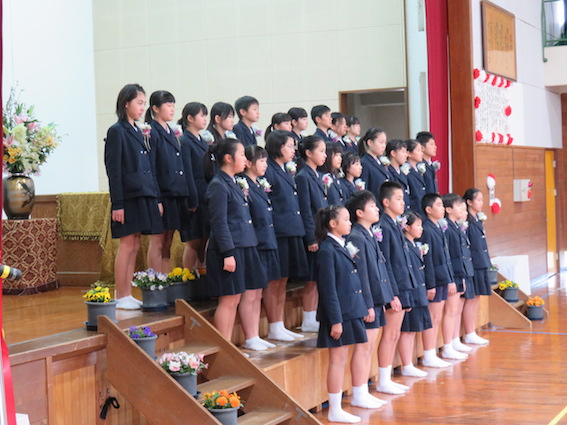 たくさんのご来賓、保護者のみなさん、在校生代表の4,5年生の出席により、卒業証書授与式が盛大に行われました。証書授与、別れの言葉など最高学年にふさわしい立派な姿を見ることができました。