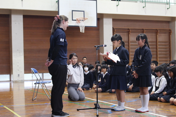 子供達は、テレビ等で見ていた選手が、腹赤小にメッセージを発してもらったことに驚いていました。