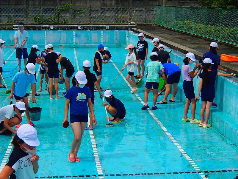 プールの中の水を抜いて、5,6年のみんなが一生懸命に掃除してくれました。