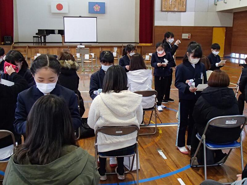 4年生は、授業参観のおり、毎年恒例となっている二分の一成人式を体育館で行いました。
