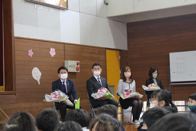 それぞれの先生方からのお話を聞き、児童代表の別れの言葉、花束贈呈をしました。新任地でのご活躍、新しい生活のスタートが素晴らしいものになるようお祈りしています。